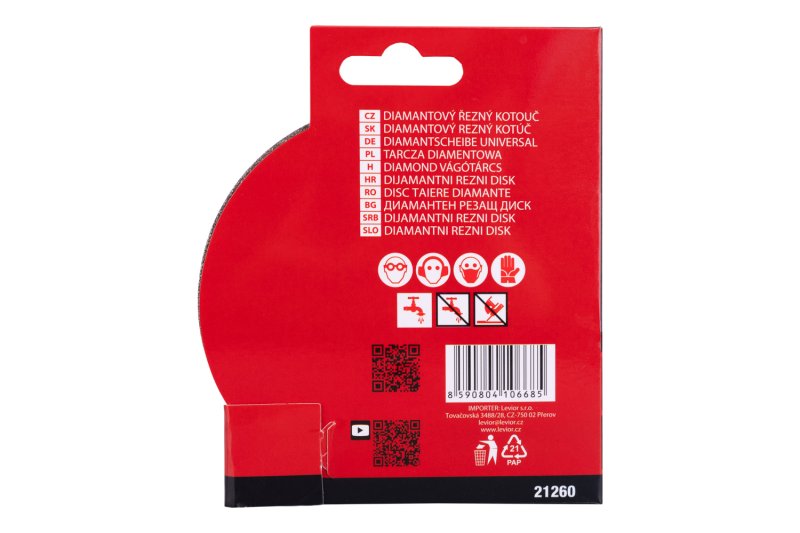 | Opis: | Profesionalna dijamantna rezna ploča za rezanje stakla, keramike, tvrdih glaziranih pločica i crijepova itd. - Dizajn s punim krugom, moguće rezanje sa i bez hlađenja, debljina ploče samo 1,6 mm - Visina dijamantnog sloja 15 mm, brz i čist rez |