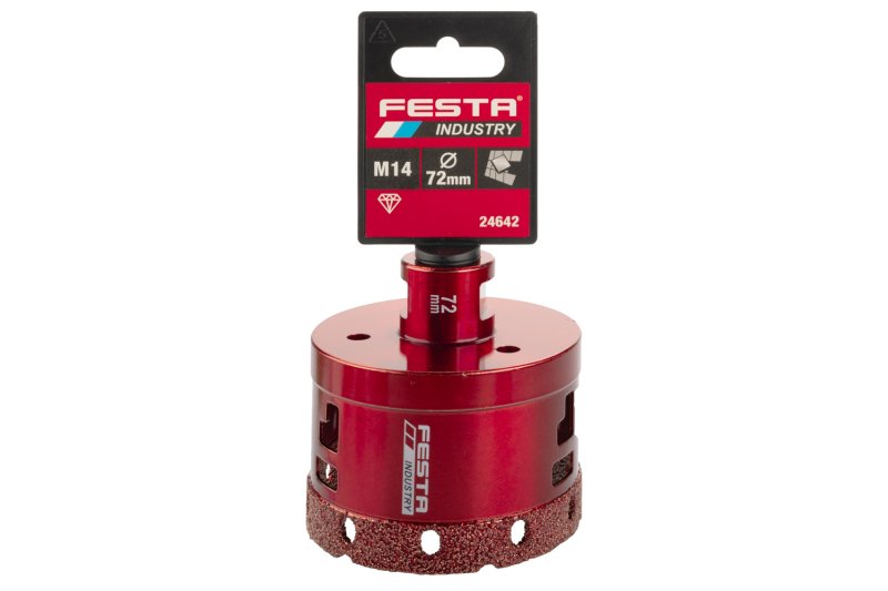 Opis: | Dijamantne krune brenda FESTA INDUSTRY proširuju ponudu proizvoda namijenjenih posebno profesionalnoj uporabi - brzo i točno bušenje i dug vijek trajanja - ovisi o vrsti materijala i tehnici! - nastavak - s navojem M14 za kutne brusilice ili s adapterom (22087) također za bušilicu/aku bušilicu - za "suho i mokro" precizno i brzo bušenje/glodanje u kamenu, tvrdim pločicama, gresu, granitu, mramoru i drugim izuzetno tvrdim materijalima ne samo u građevinskoj industriji - visina dijamantnog sloja 10 mm, manja veličina dijamantnih zrna i samim time veća gustoća dijamantnih zrna, rashladni vosak za veće promjere rupa značajno produljuje vijek trajanja - bez potrebe za korištenjem bilo kakvog pomoćnog alata izbušiti ćete točnu rupu na željenom mjestu - preporučeni radni postupak : - zavrnite krunu izravno na navoj glave kutne brusilice, čvrsto zategnite - počnite bušiti pod kutom od 45°, krunica i brzina brusilice će odmah učvrstiti nastavak na željenom mjestu, ravnomjerno stvorenim pritiskom polako ispravite smjer kružnice u okomiti položaj - manji promjeri od 6 - 12 mm se pune voskom, za dulji vijek trajanja krunice poželjno je dodati vosak (24710) ili ohladiti vodom, odn. neka se ohladi na zraku! |
